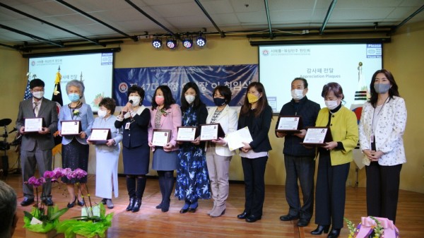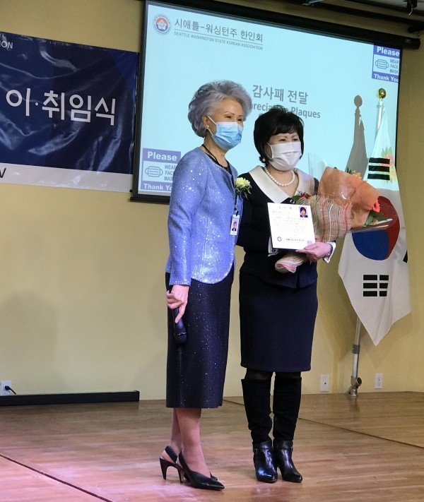 시애틀한인회는 이날 이임을하는 이수잔 직전 회장과 홍윤선 직전 이사장에게 감사패를 전달했다.