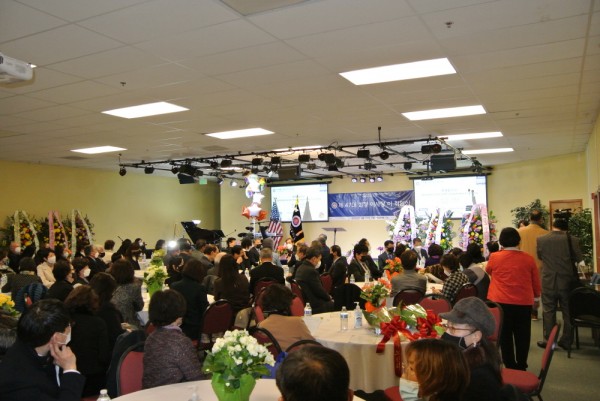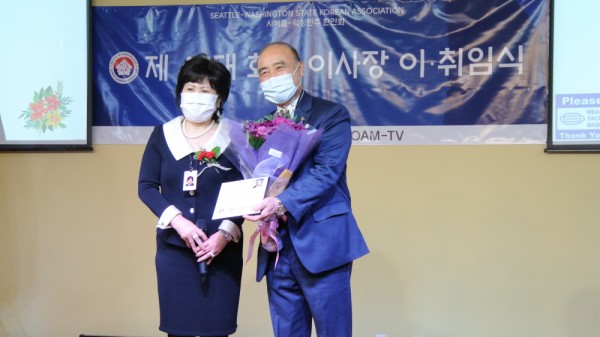 시애틀한인회가 지난 주말인22일 페더럴웨이 코앰TV에서 개최한 이취임식에는 오미크론으로 참석 인원을 제한했는데도 100명이 넘는 한인 사회 인사들이참여해 성황을 이뤘다. 시애틀한인회는 행사내내 참석자들이 마스크를 착용하도록 하도록 하고 식사도 도시락으로준비해 행사 후에 가져가도록 유도하는 등 안전에 최선을 다해 별다른 문제없이 행사를 마무리했다.